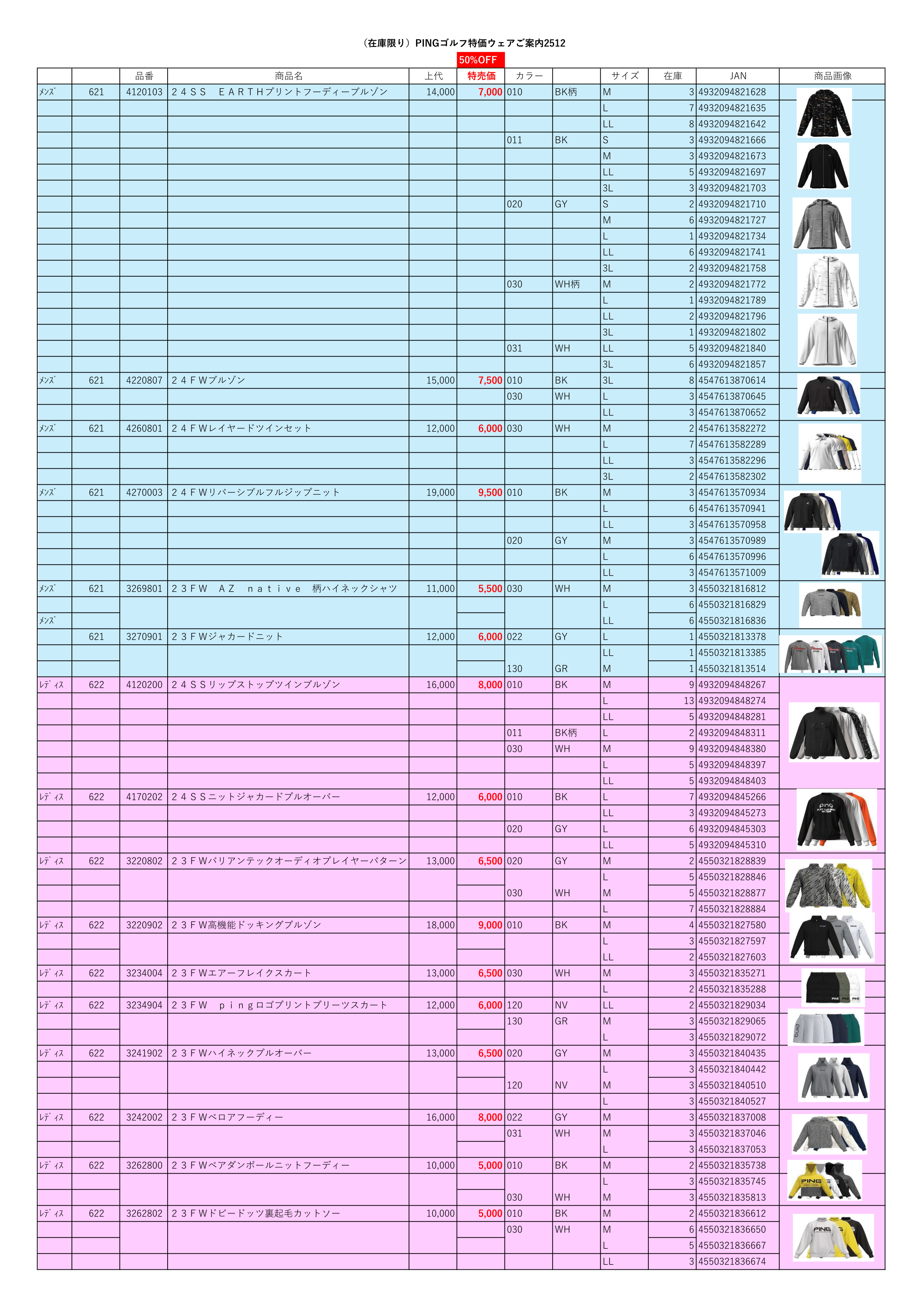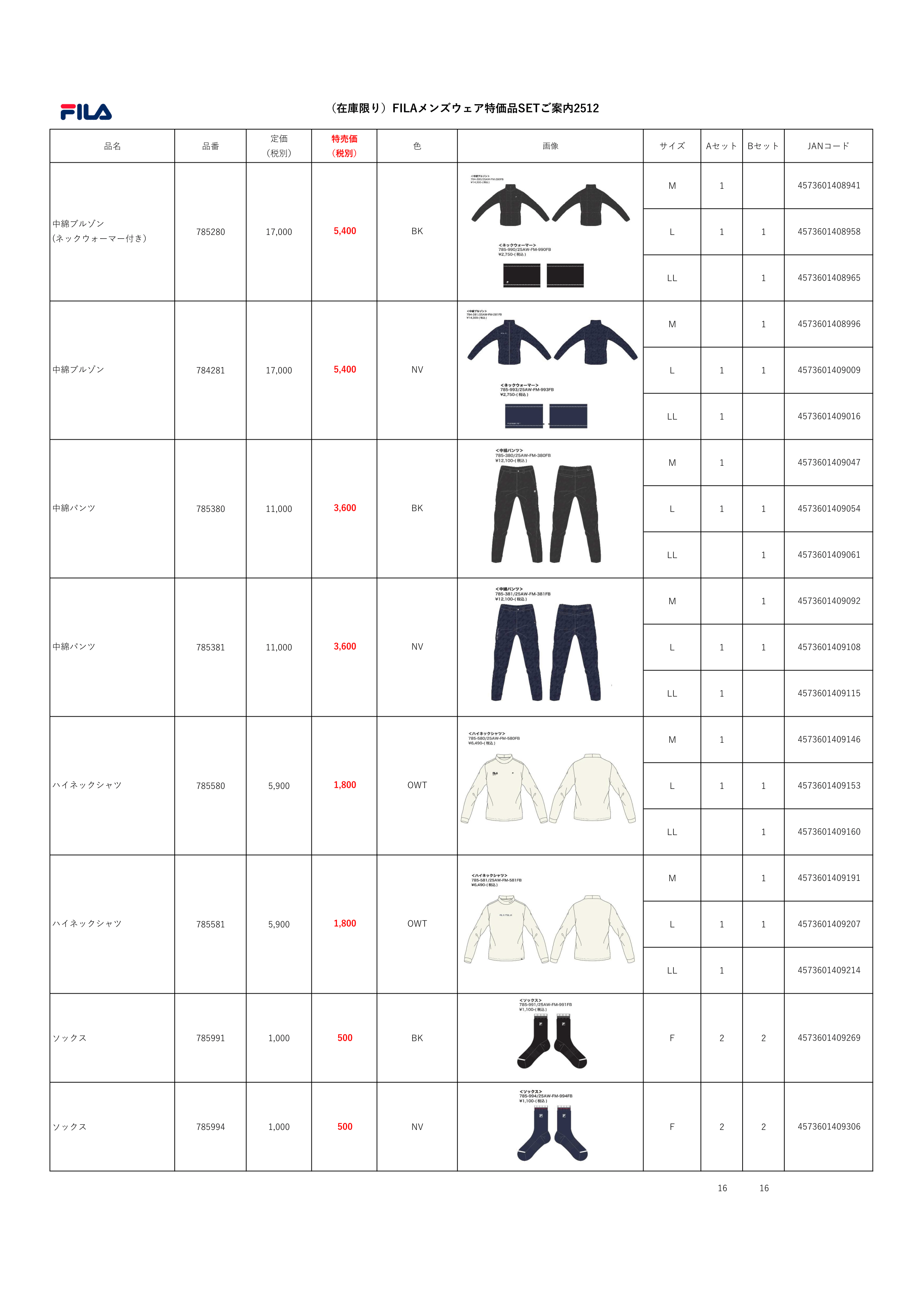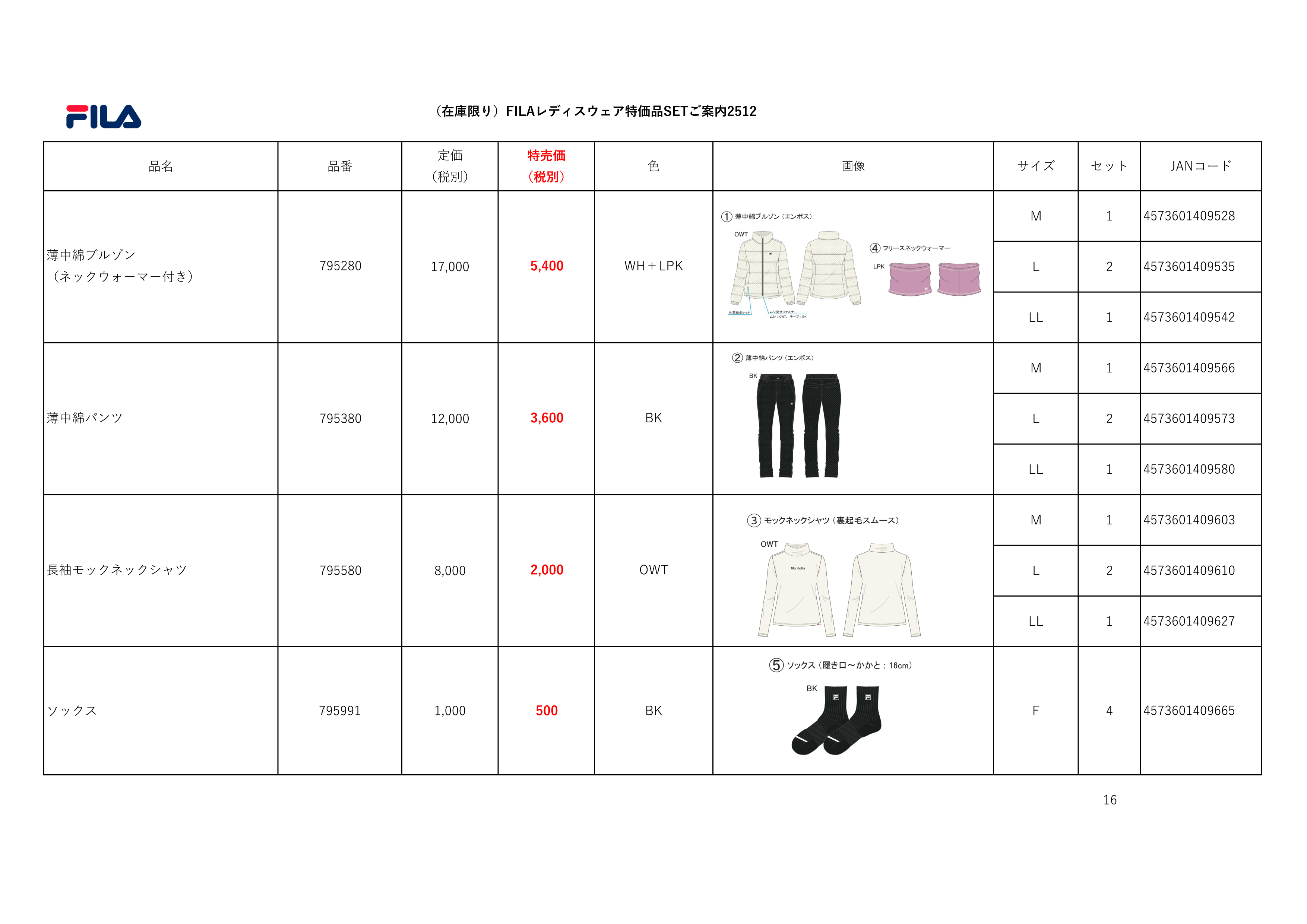 (在庫限り)FILA GOLFウェア特売価ご案内2511