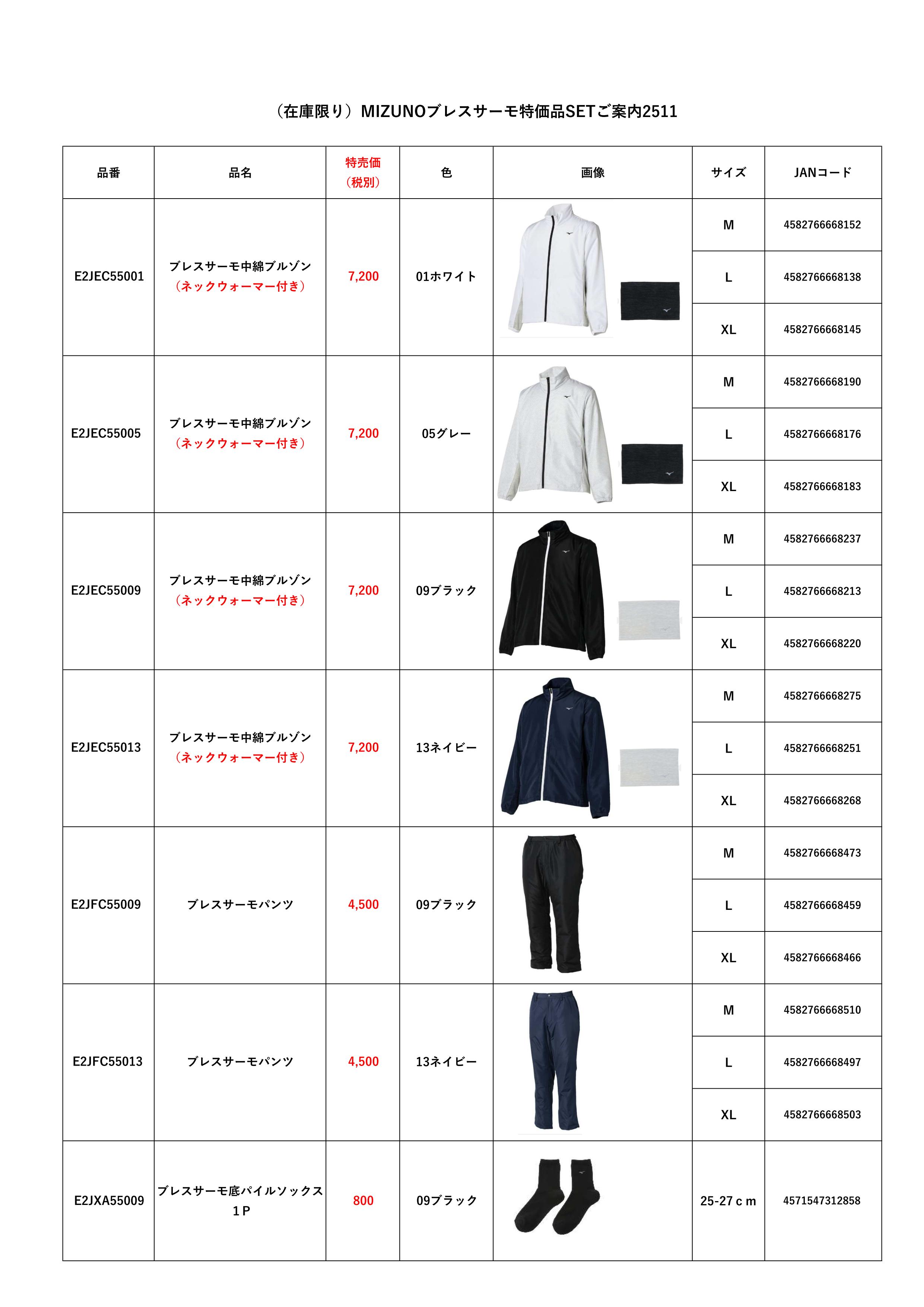 (在庫限り)MIZUNOブレスサーモ特価品ご案内2511