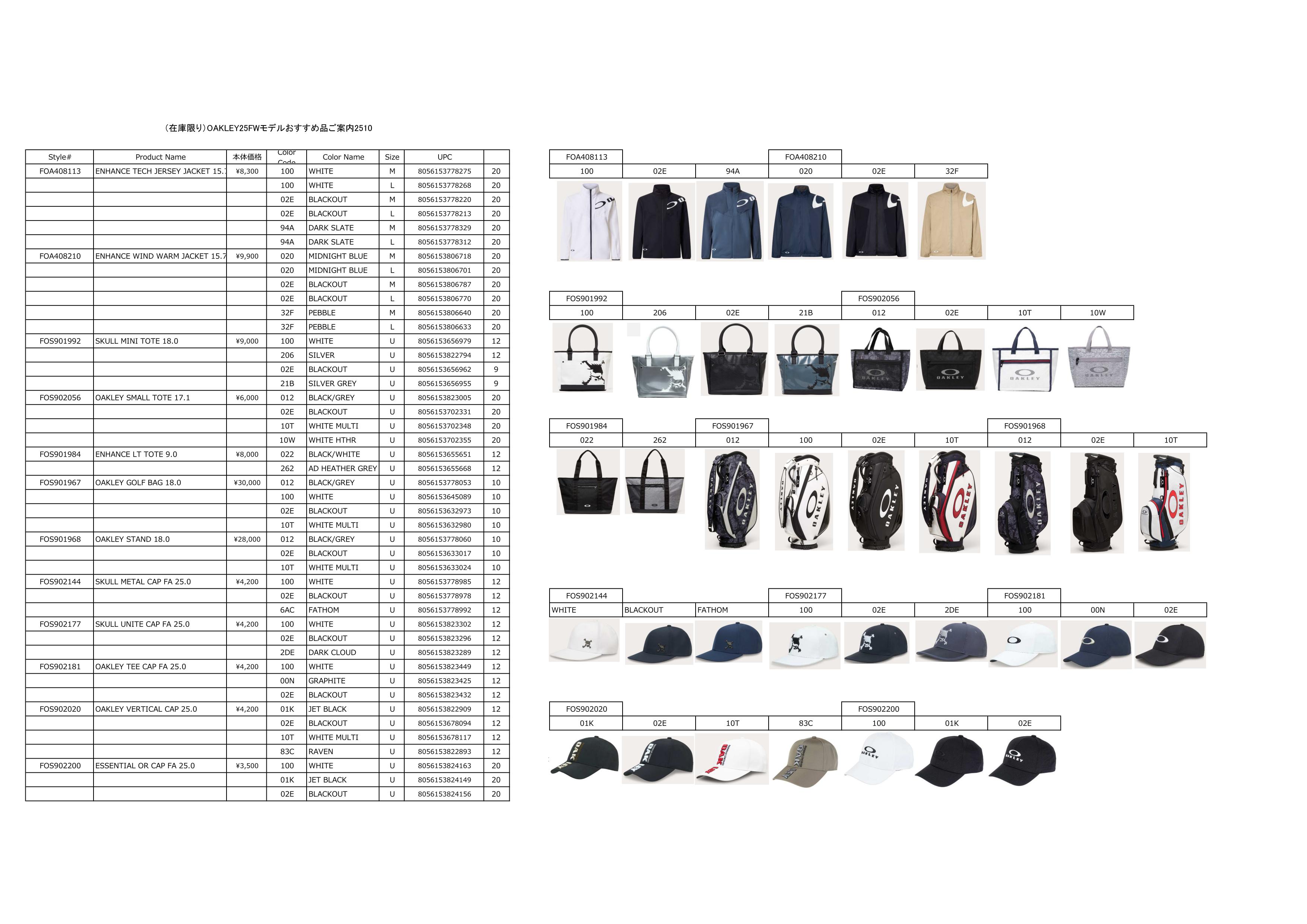(在庫限り)OAKLEY25FWモデルおすすめ品ご案内2510