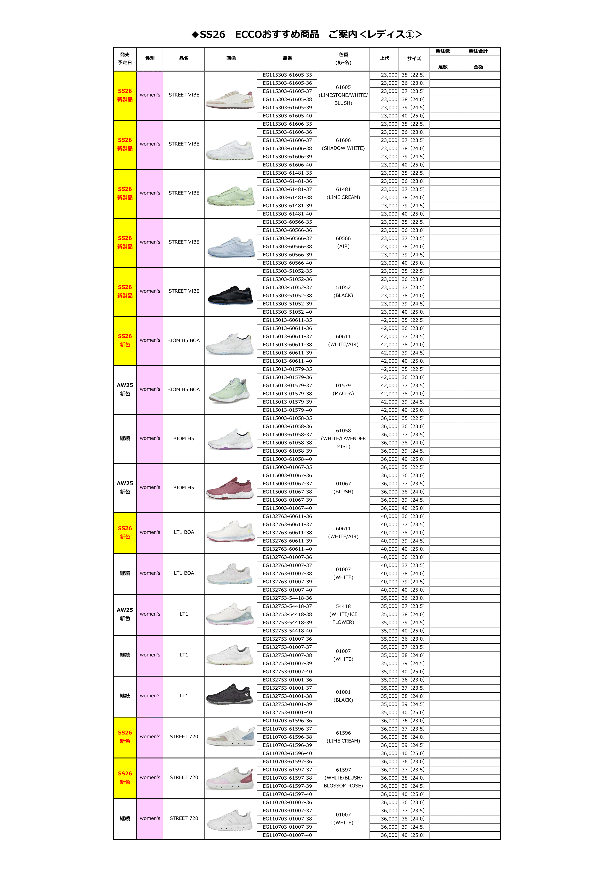 ECCOゴルフシューズ定番品(レディス)ご案内2602