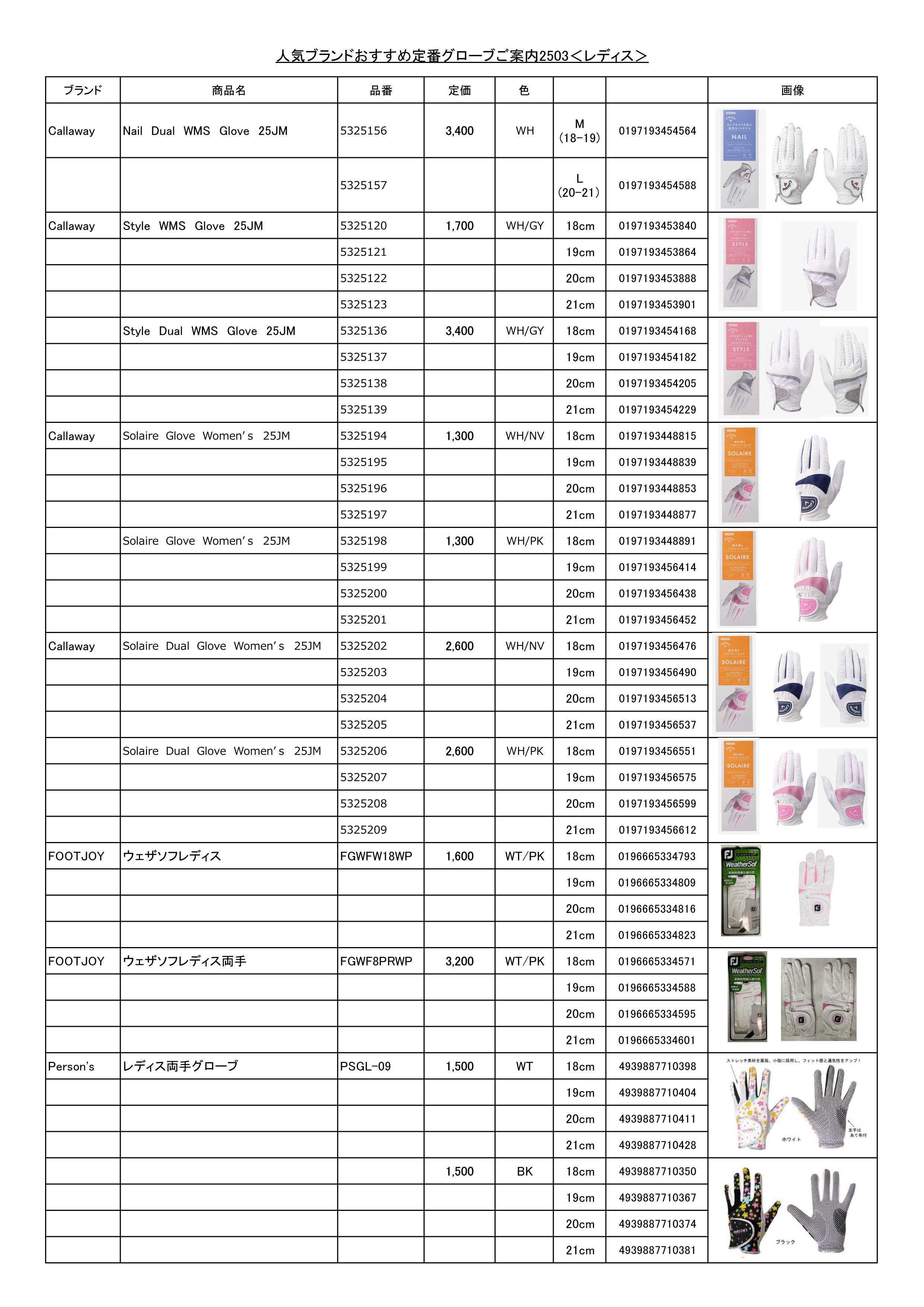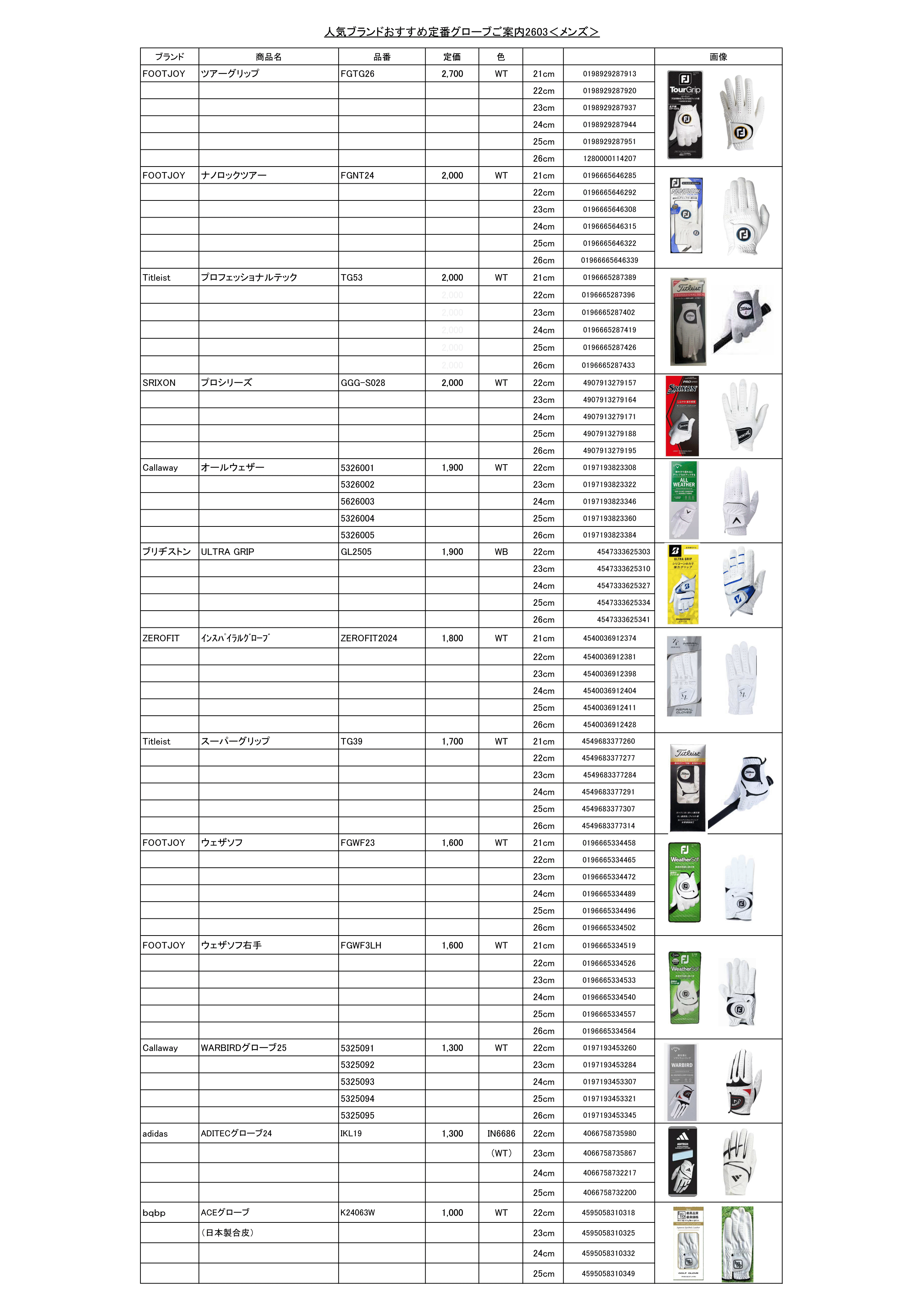 FOOTJOY・Titlest 定番グローブご案内2310