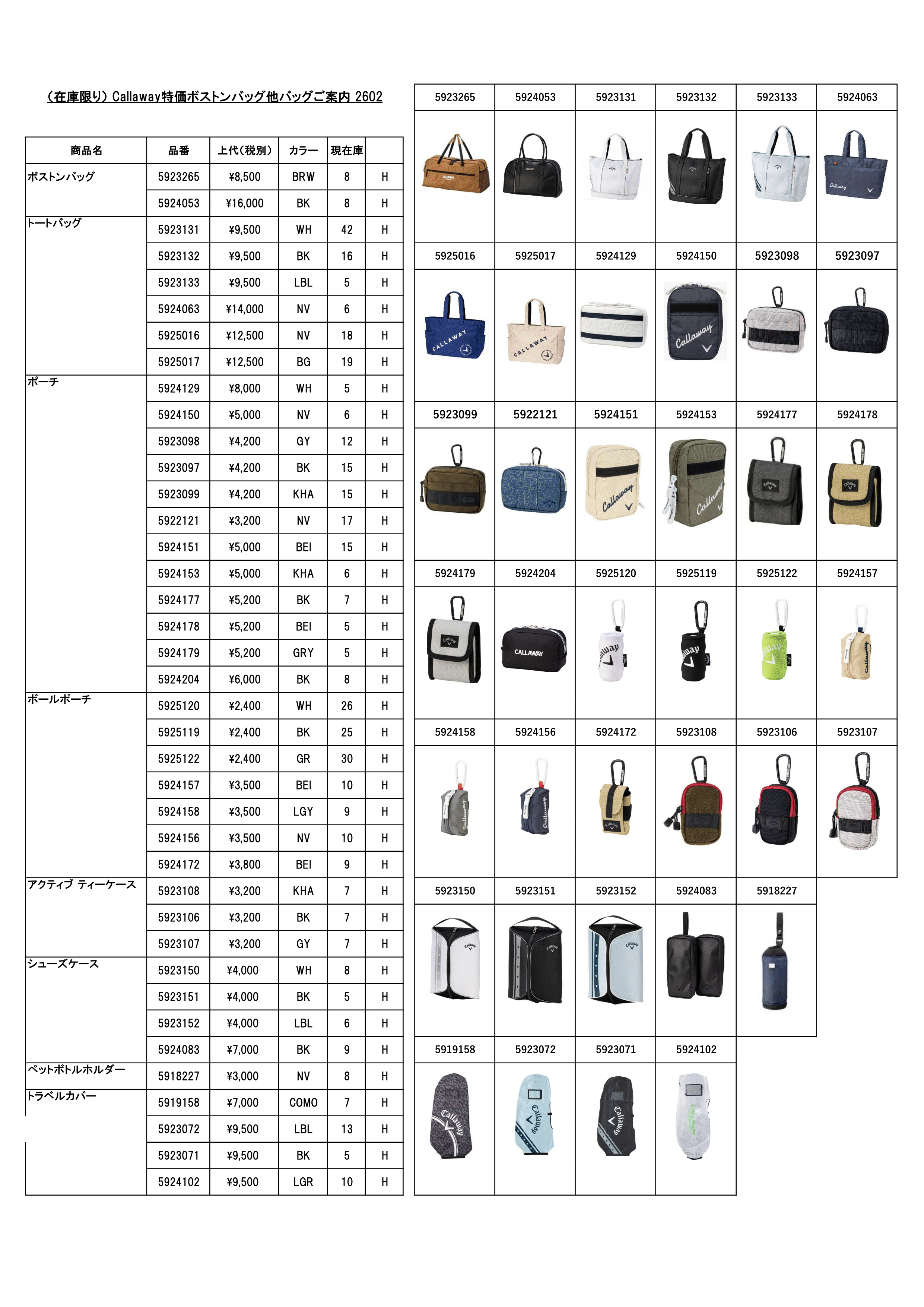 (在庫限り)Callaway特価バッグ類ご案内2602