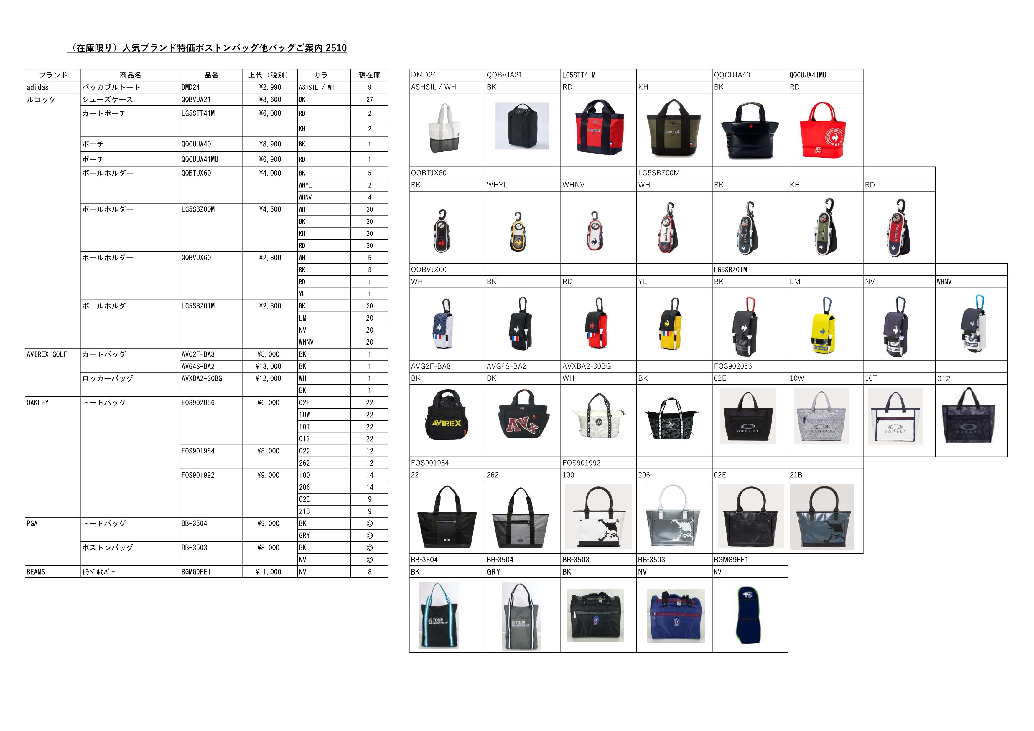 (在庫限り)人気ブランドバッグ類特価品ご案内2510