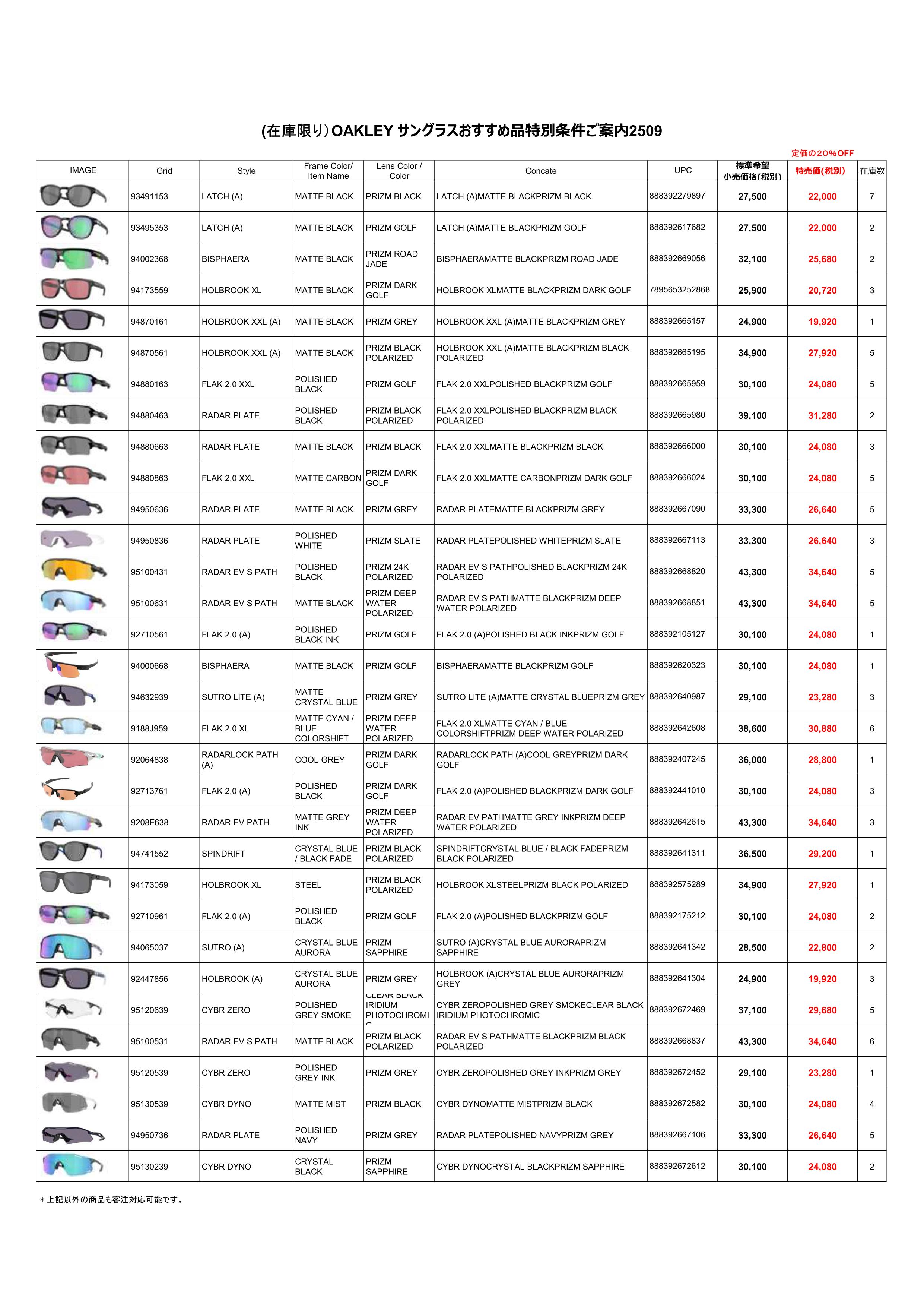 (在庫限り)オークリーサングラス人気商品ご案内2509