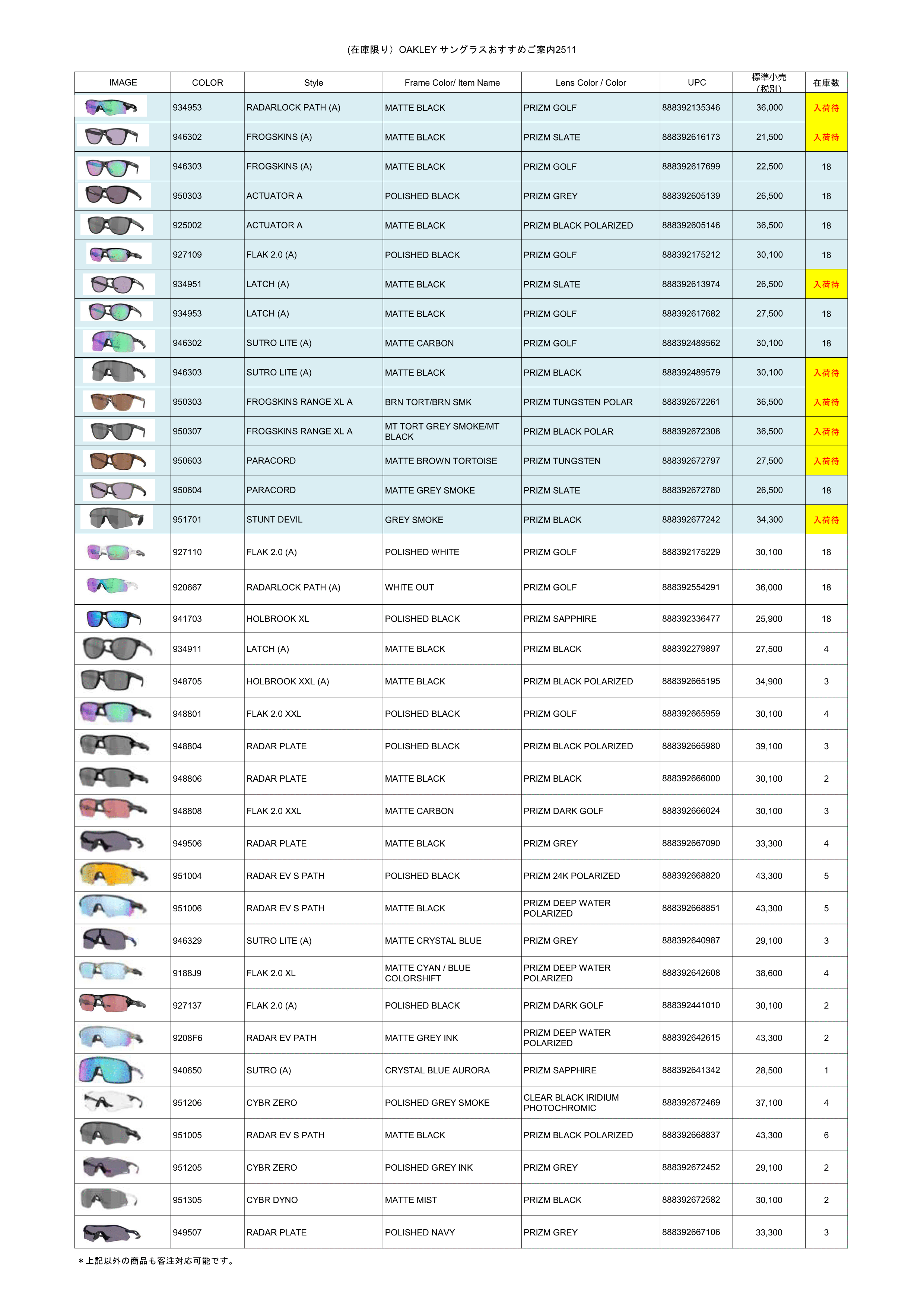 (特別条件)OAKLEYサングラスおすすめ品ご案内2511
