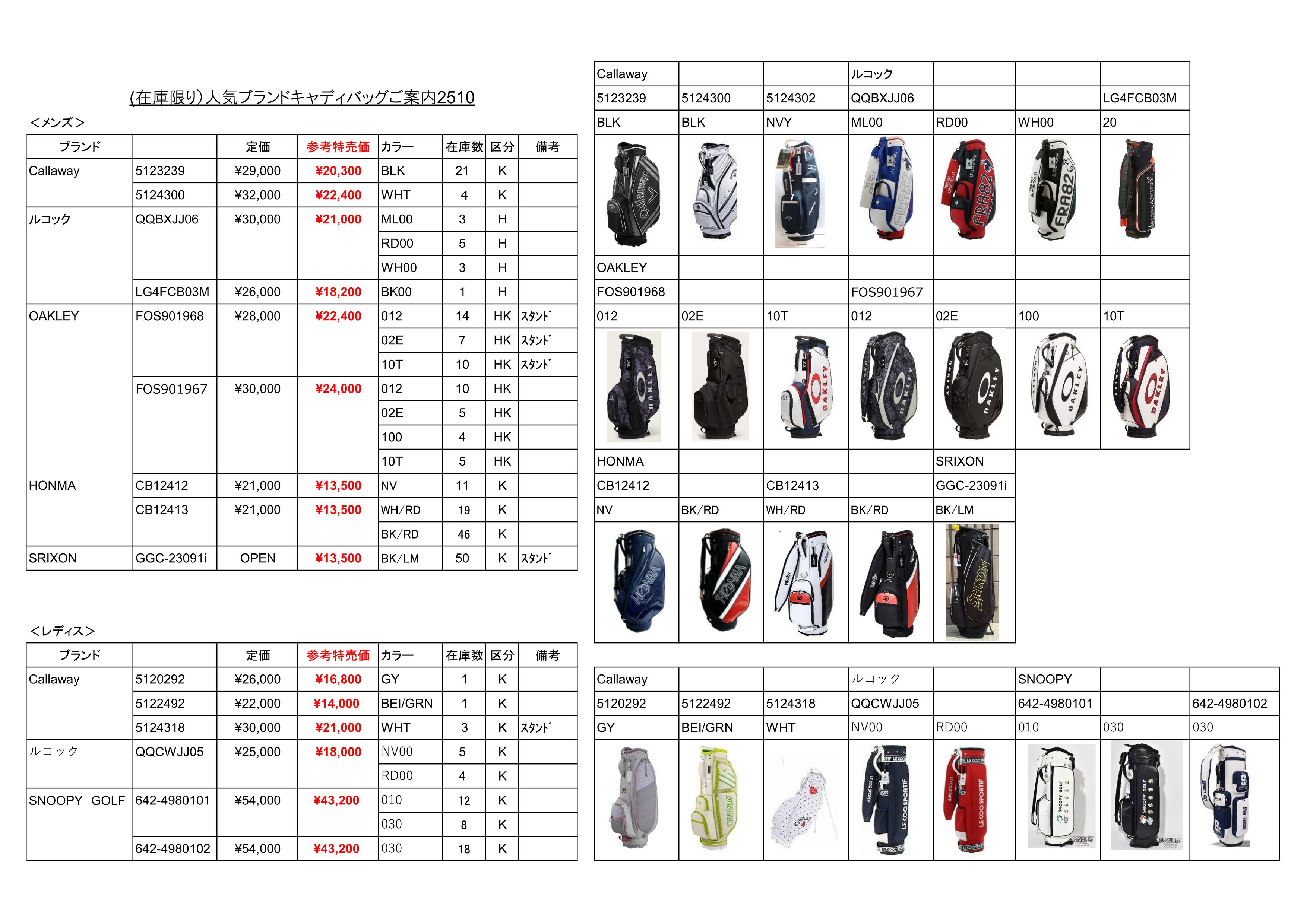 (在庫限り)人気ブランドキャディバッグご案内2510
