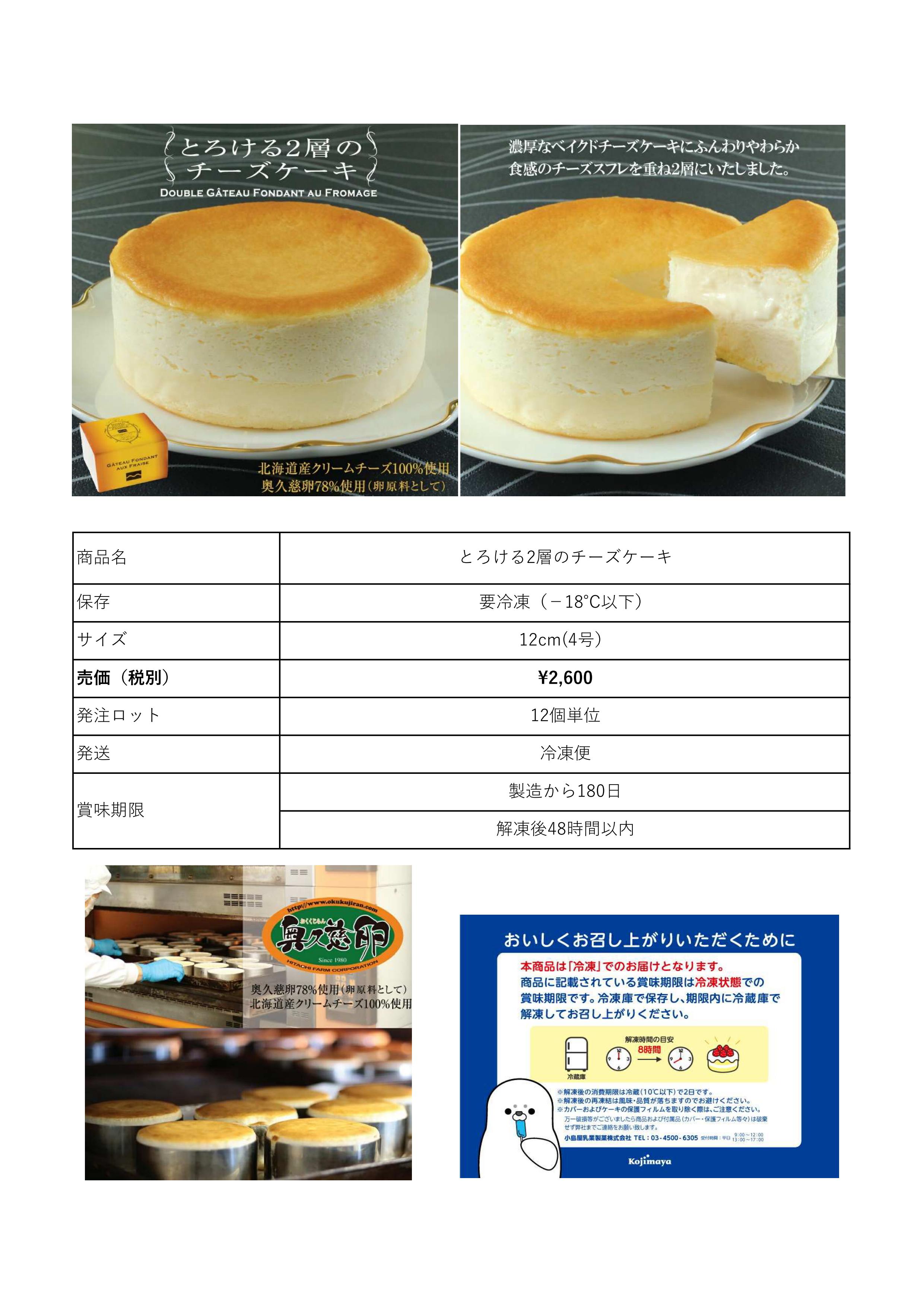 大人気!とろける2層のチーズケーキご案内