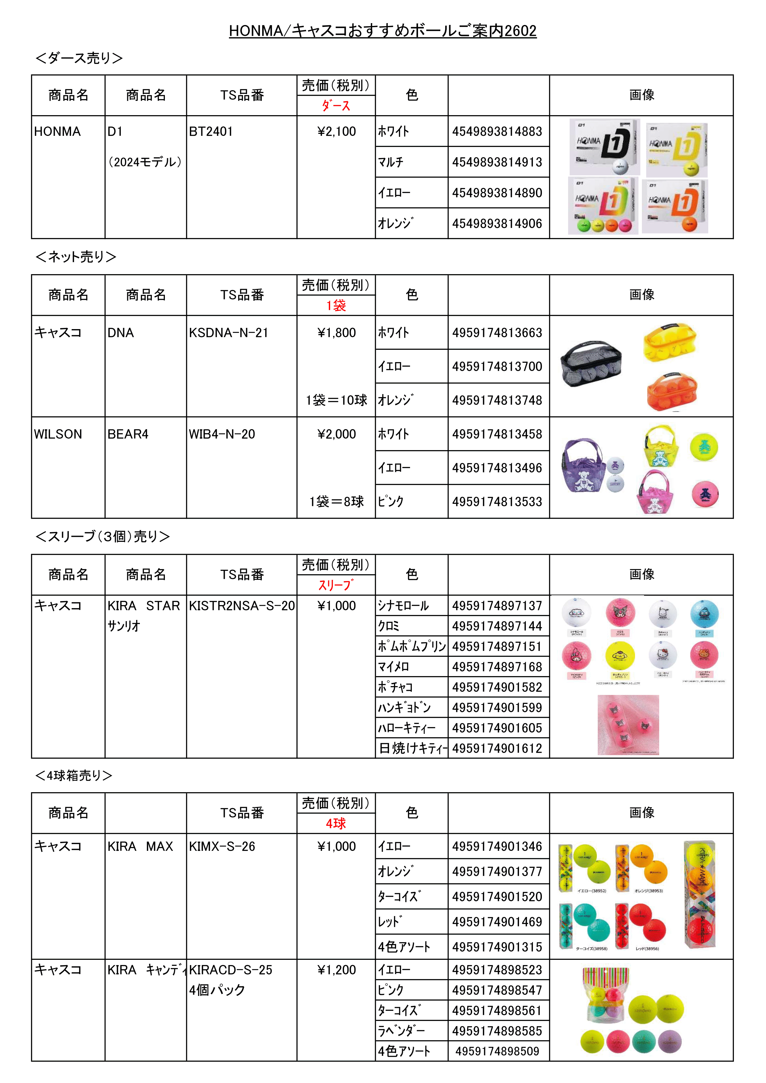 HONMA/キャスコおすすめボールご案内2602